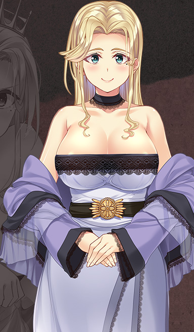 長いプラチナブロンドを持つ、おっとりした爆乳美女。